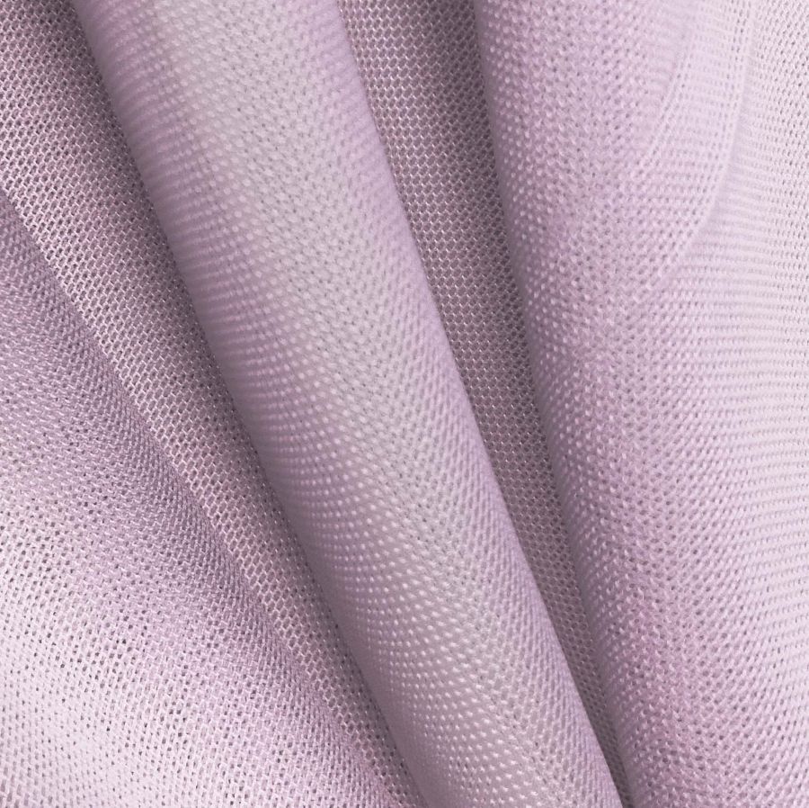 La tela base es el Tul Elástico - Oslo, compuesta por 94% poliéster y 6% elastano, de gramaje de 80 gr/m2 y ancho de 147 cm. El color liso impreso es un morado intenso y vibrante, con la referencia de color cardo morado en CMYK 16 35 4 0. El color cardo morado es una tonalidad mixta entre púrpura y gris, que simboliza elegancia y sofisticación. Este color combina particularmente bien con tonos de rosa claro y grisáceos.
