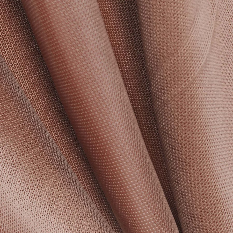 El Tul Elástico - Oslo es un tejido de tul transparente y elástico, compuesto mayoritariamente de poliéster y elastano, con un gramaje de 80 gr/m2 y una anchura de 147 cm. El color liso impreso de este tejido es Marrón Sepia, con una composición CMYK de 33-60-62-36. Este tono marrón evoca el aroma del café, la madera antigua y la nostalgia. Combina perfectamente con colores crema, beige y blanco para tonos minimalistas o vintage; o con verdes oscuros, amarillos y naranjas para un ambiente rústico o vintage. El tejido está impreso con el color liso a una sola cara por impresión digital textil, por lo que se recomienda manipular con delicadeza.