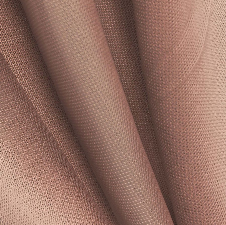 La tela base de este tejido se llama Tul Elástico - Oslo, compuesta de un 94% de poliéster y un 6% de elastano, con un gramaje de 80 gr/m2 y un ancho de 147 cm. El color liso impreso en esta tela es un tono marrón-castaña, con un CMYK de 29 51 48 22. Este color da una sensación de calidez y elegancia a la tela, y combina especialmente bien con colores como el blanco, el amarillo mostaza o el verde musgo.