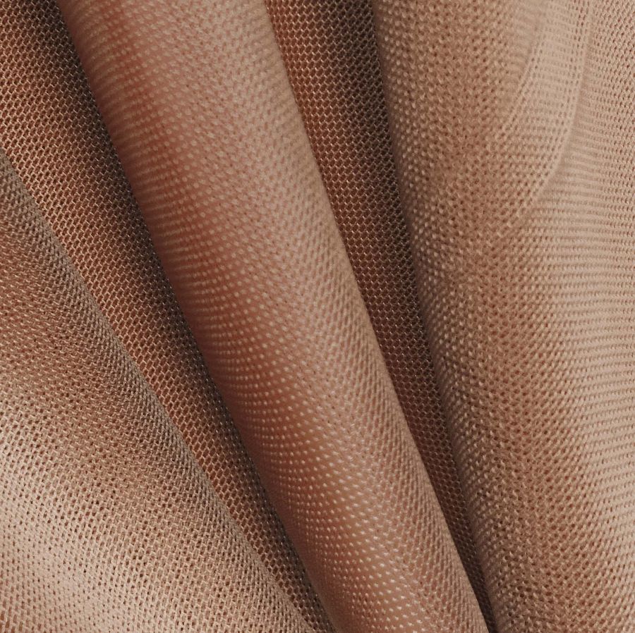 La tela base es el Tul Elástico - Oslo, compuesta por 94% poliéster y 6% elastano, con un gramaje de 80 gr/m2 y un ancho de 147 cm. El color liso impreso es Marron-Oso café, con un CMYK de 33 58 68 35. Este tono es un marrón suave y cálido que transmite seguridad y cercanía. Combina a la perfección con tonos amarillos, naranjas y verdes. La tela está impresa en una sola cara por impresión digital textil, lo que garantiza la alta calidad y fijación del color.