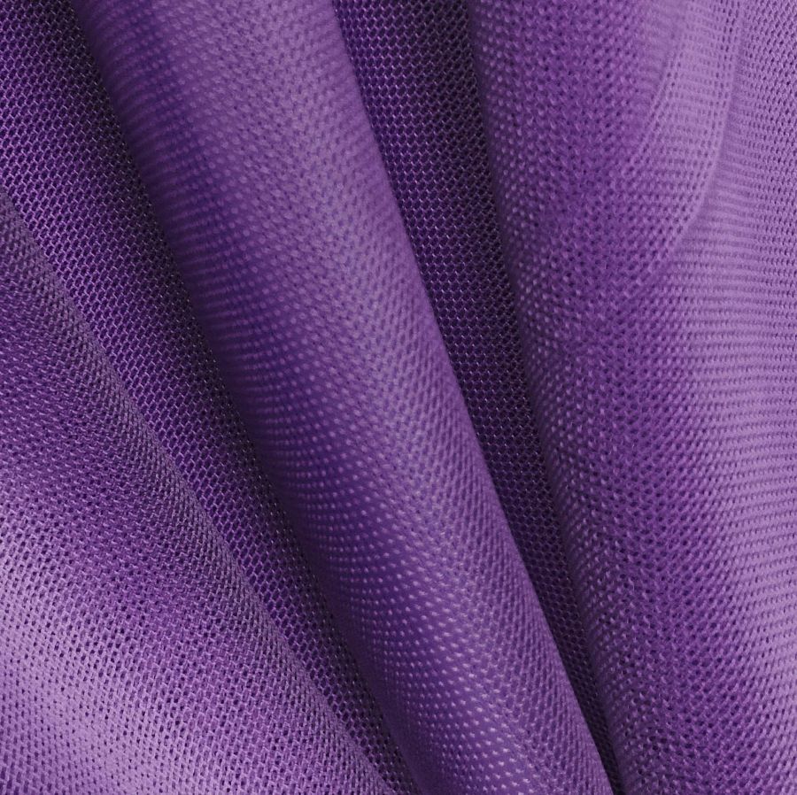 La tela base es el Tul Elástico - Oslo, compuesta de un 94% de poliéster y un 6% de elastano, con un gramaje de 80 gr/m2 y un ancho de 147 cm. El color liso impreso en la tela es Morado Iris, con el siguiente CMYK: 82 100 19 7. Este color secundario es una combinación de tonos oscuros de morado y violeta, dando lugar a un tono intenso y enigmático. Este color se combina perfectamente con otros tonos oscuros como el negro y el gris oscuro, y también con verdes y azules oscuros. Es importante destacar que la tela está impresa con el color liso a una sola cara por impresión digital textil.