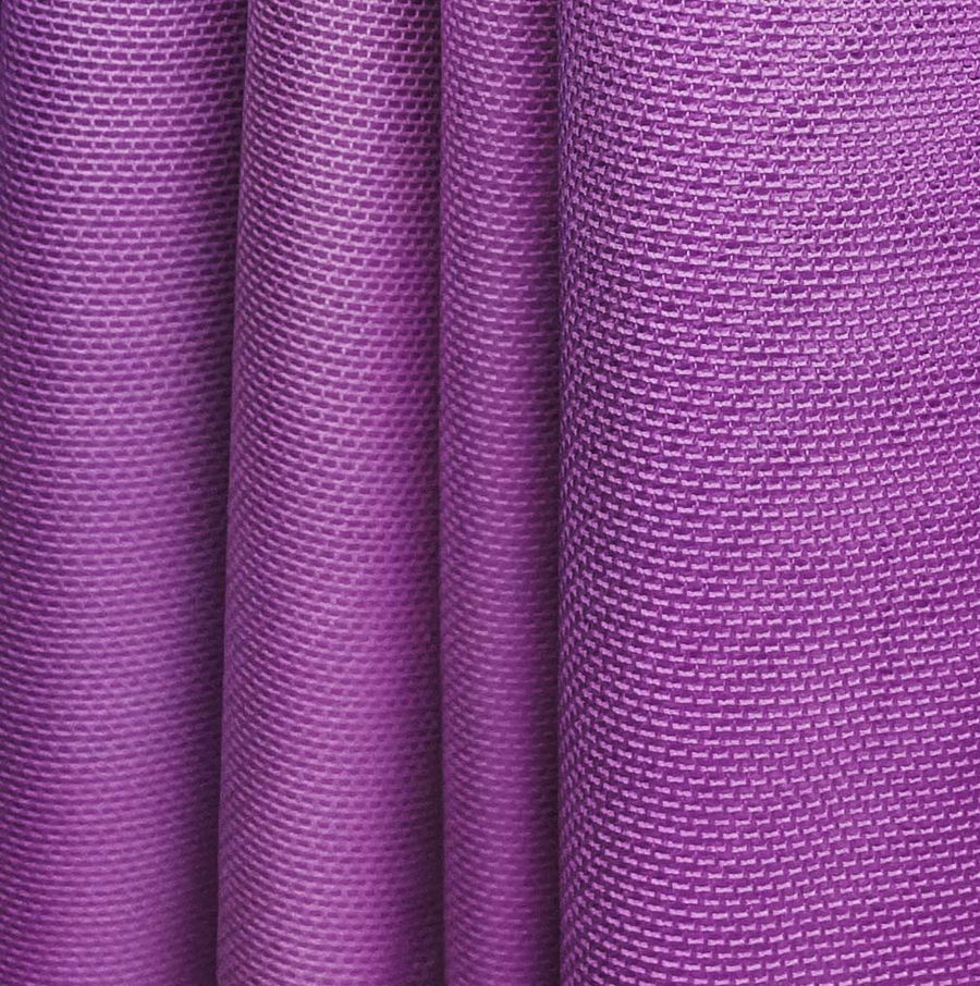 La tela base, Tul Elástico - Oslo, es un tejido de tul con 94% poliéster y 6% elastano con un gramaje de 80 gr/m2 y un ancho de 147 cm. El color liso impreso es de un tono morado-púrpura intenso con valores de 65 de cian, 98 de magenta, 9 de amarillo y 2 de negro, reflejando la sutileza de los tonos pastel y la fuerza del contraste. Este color combina perfectamente con tonos suaves como el rosa pastel, el gris claro y el blanco, así como con tonos más fuertes como el amarillo mostaza y el verde menta.