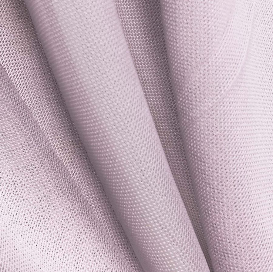 La tela base es el tul elástico Oslo, compuesta por un 94% de poliéster y un 6% de elastano, con un gramaje de 80 gr/m2 y un ancho de 147 cm. Su color liso impreso es morado bígaro, con un CMYK de 9 27 3 0, que le aporta una textura visual transparente y un tacto delgado elástico. Este color secundario se complementa especialmente bien con el verde oliva, el rosa dorado y el gris suave. Es importante destacar que la tela está impresa con el color liso a una sola cara por impresión digital textil, lo que no afecta en absoluto a su elasticidad ni a la calidad de la impresión.