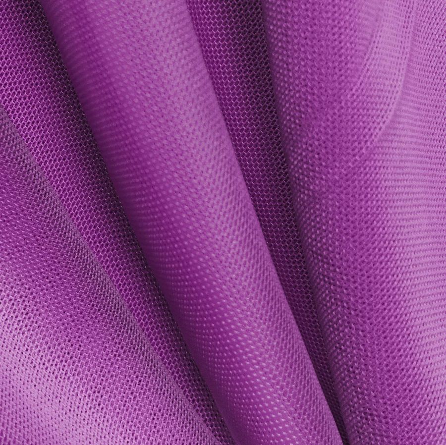 La tela base es el Tul Elástico - Oslo, con composición del 94% poliéster y 6% elastano, de gramaje 80 gr/m2 y ancho de 147 cm. El color liso impreso tiene los siguientes atributos de tinta CMYK: 58 95 2 0, lo que le da una tonalidad morada y púrpura. Este color es símbolo de creatividad, transformación y misterio, siendo capaz de estimular la imaginación y la espiritualidad en quien lo usa.