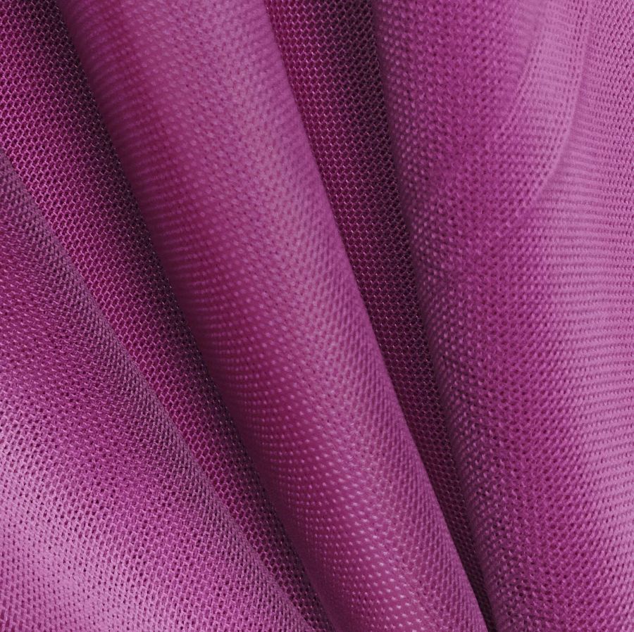 El Tul Elástico - Oslo es una tela de tipo tul con una composición de 94% poliéster y 6% elastano. Su gramaje de 80 gr/m2 y su ancho de 147 cm hacen que sea un tejido ligero y suave al tacto. Su color liso impreso es un tono morado berenjena con un contenido de CMYK de 53 99 25 18. Este color es perfecto para dar un toque de elegancia y sofisticación en cualquier prenda.