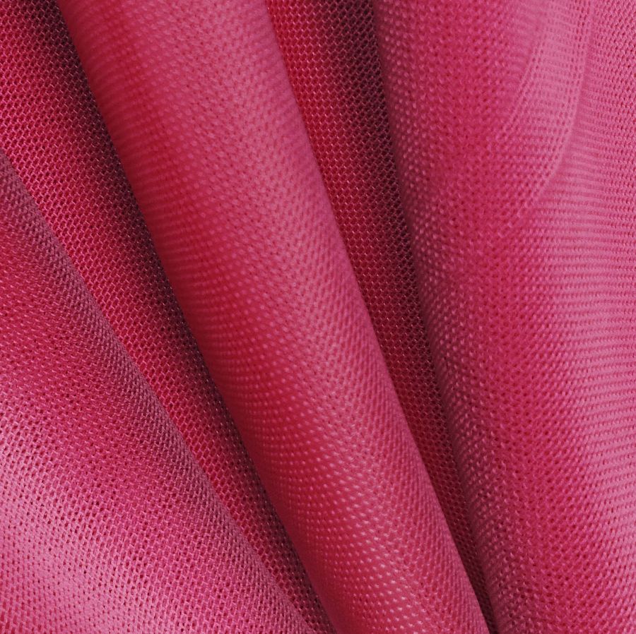 La tela base, Tul Elástico - Oslo, es un tul transparente, delgado y elástico, compuesto de 94% poliéster y 6% elastano, con un gramaje de 80 gr/m2 y un ancho de 147 cm. Está impresa a una sola cara por impresión digital textil con un color liso rojo granate brillante, cuyo CMYK es 23 100 58 18.