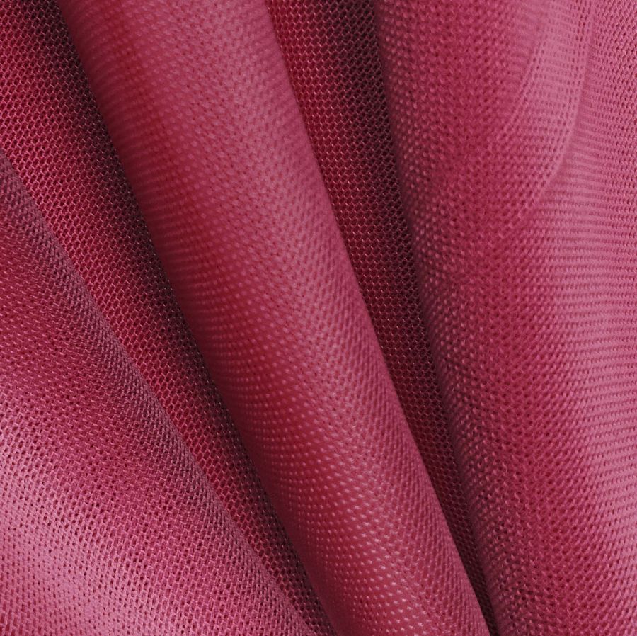 La tela base es Tul Elástico - Oslo, compuesta por 94% poliéster y 6% elastano, con un gramaje de 80 gr/m2 y un ancho de tela de 147 cm. El color liso impreso es Rojo Granate Morado, cuyo CMYK es 29 100 61 35. Este color es una combinación moderna y sofisticada de rojo, púrpura y granate, que se asocia con la pasión y la elegancia. El color secundario aporta un toque misterioso y profundo, y combina perfectamente con tonos neutros, como gris y blanco, así como con fucsia y rosa palo.