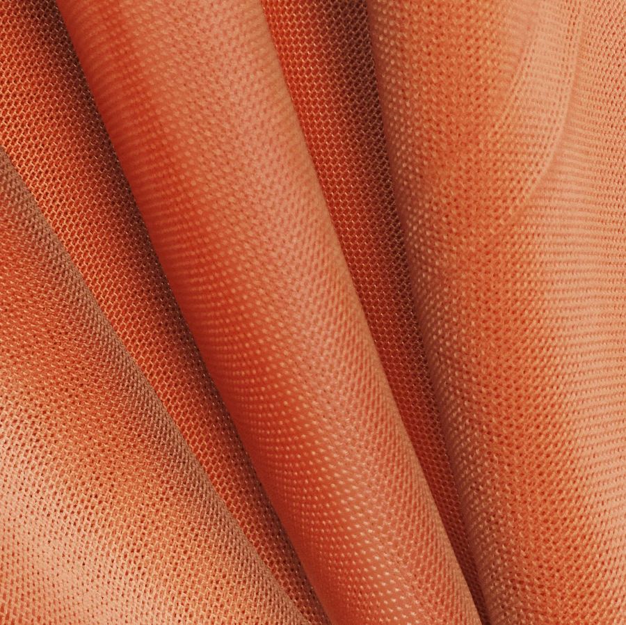 La tela base es el Tul Elástico - Oslo, compuesta por un 94% de poliéster y un 6% de elastano, con un gramaje de 80 gr/m2 y un ancho de 147 cm. Su color liso impreso es un naranja toronja con un CMYK de 16 77 92 5. El naranja toronja simboliza la energía, la creatividad y la vitalidad, y técnicamente se le puede considerar un color cálido y brillante. Combina especialmente bien con colores como el azul marino, el verde bosque y el gris. Es importante destacar que la tela está impresa con el color liso a una sola cara por impresión digital textil.
