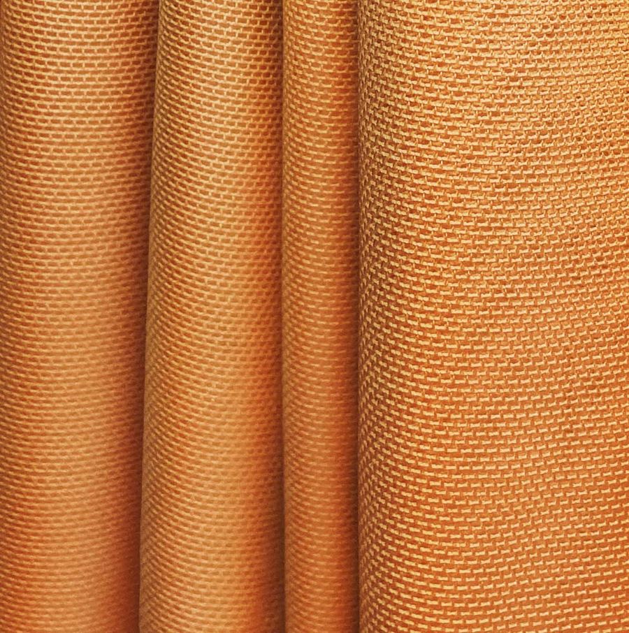 La tela base, Tul Elástico - Oslo, es un tul transparente y delgado compuesto por 94% de poliéster y 6% de elastano. Con un gramaje de 80 gr/m2 y un ancho de 147 cm, su color liso impreso es un naranja Basket Ball con un CMYK de 16 69 97 5. Este tono vibrante y enérgico combina bien con tonalidades análogas al amarillo y al rojo, así como con su complementario azul oscuro.