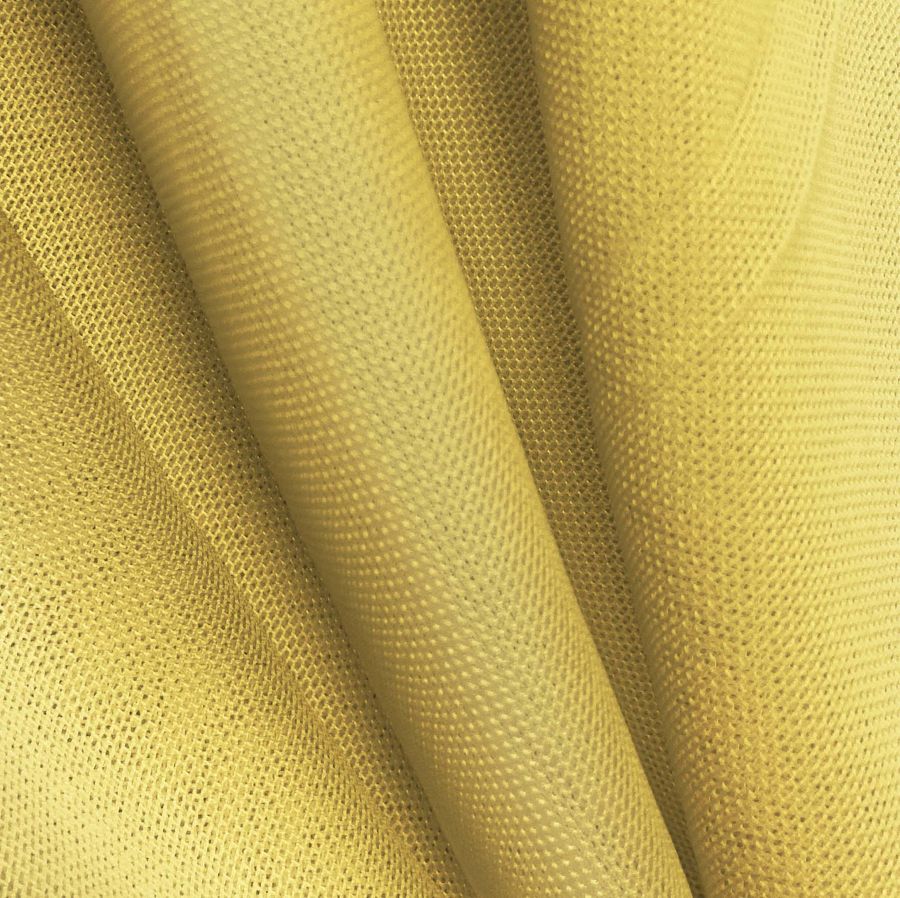 La tela base de este tejido es el Tul Elástico - Oslo, compuesta principalmente por poliéster y elastano, con un gramaje de 80gr/m2 y un ancho de 147cm. El color liso impreso es un amarillo mostaza con un contenido de CMYK de 9 22 71 1. Este color simboliza la mente creativa, la alegría y la luz del sol. Es un color versátil que combina particularmente bien con gris, azul, verde y rosa.