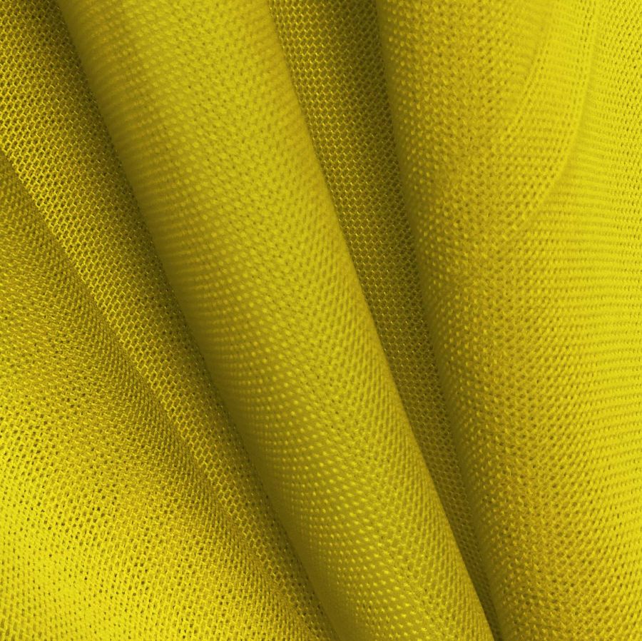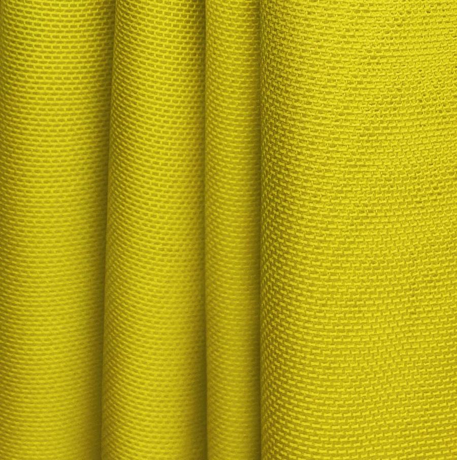 La tela base es el Tul Elástico - Oslo, compuesta por 94% poliéster y 6% elastano con un gramaje de 80 gr/m2 y un ancho de 147 cm. Su color liso impreso es amarillo y marrón galleta, con un CMYK de 26 27 98 8. En particular, el color marrón galleta aporta una sensación de calma y seguridad, mientras que el amarillo simboliza la alegría y la energía. Estos colores combinan especialmente bien con tonos tierra y neutros.