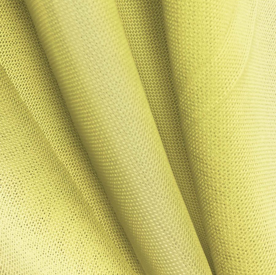 La tela base es un Tul Elástico - Oslo, con un alto porcentaje de poliéster y una pequeña cantidad de elastano que aporta una elasticidad adecuada para tejidos como faldas, vestidos, lencería y su uso en accesorios de moda. Su gramaje de 80 gr/m2 y una anchura de 147 cm lo hacen muy versátil en su uso. El color liso impreso en la tela tiene una tintura de Amarillo Maíz, con un contenido de 4% de cian, 1% de magenta, 65% de amarillo y 0% de negro en la impresión digital textil, lo que proporciona un color suave y vibrante. El tono amarillo se combina de forma atractiva con colores como el gris, blanco y negro, suaves y naturales. Es esencial destacar que la tela base está impresa con color liso a una sola cara por impresión digital textil, lo que significa que no es un tejido tintado sino impreso con un proceso de alta tecnología.