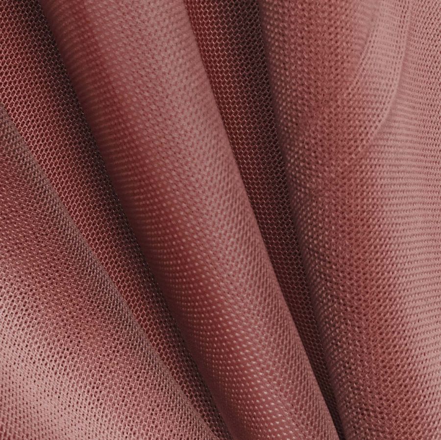 El Tul Elástico Oslo es una tela transparente y elástica compuesta por 94% de poliéster y 6% de elastano, con un gramaje de 80 gr/m2 y un ancho de 147 cm. El color liso impreso tiene una combinación de colores marrón y sangre roja, con un CMYK de 34 77 67 44. Este color secundario sugiere pasión y fuerza, destacando en prendas para ocasiones formales o para resaltar detalles en piezas más informales. Combina especialmente bien con tonos claros como el blanco o el beige, creando un contraste elegante y atrevido.