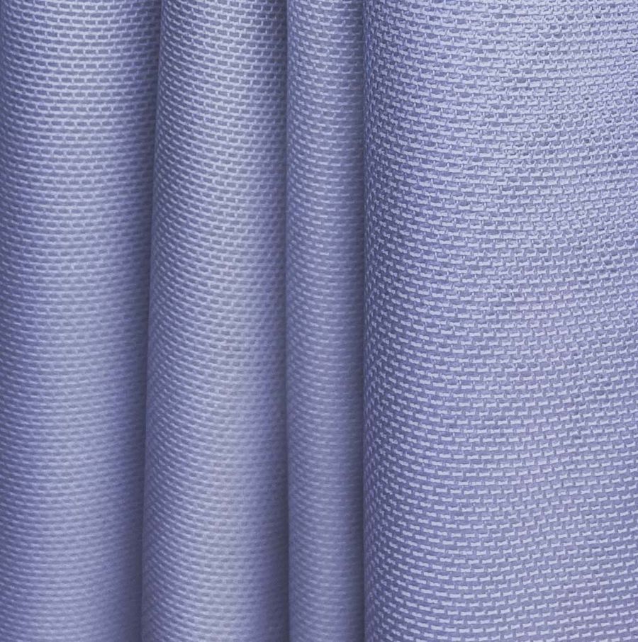La tela base es el Tul Elástico - Oslo, compuesta por un 94% de poliéster y un 6% de elastano, con un gramaje de 80 gr/m2 y un ancho de 147 cm. Su color liso impreso es de un tono Morado Uva, con una combinación de tinta Cyan de 60, Magenta de 51, Yellow de 11 y Black de 1, representados por el valor de CMYK de 60 51 11 1. El color Morado Uva es un color secundario que transmite elegancia y sofisticación, combinando perfectamente con tonalidades de rosa, azul y amarillo. El tejido está impreso con el color liso a una sola cara por impresión digital textil.