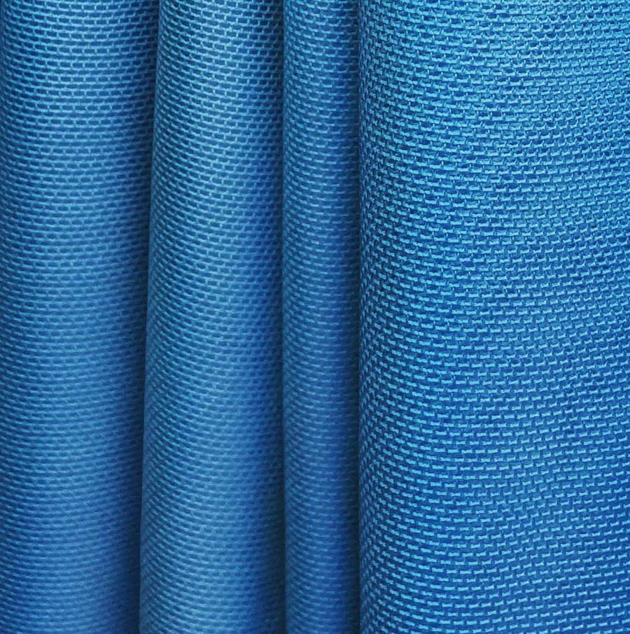 La tela base es el Tul Elástico - Oslo, compuesta en un 94% de poliéster y un 6% de elastano, con un gramaje de 80 gr/m2 y un ancho de 147 cm. El color liso impreso es un azul medio, con una tinta cyan de 97, una tinta magenta de 67, una tinta yellow de 13 y una tinta black de 2, con un CMYK de 97 67 13 2. Este color es ideal para aportar un toque de frescura y sofisticación a cualquier prenda y combina perfectamente con colores pastel y tonos tierra.