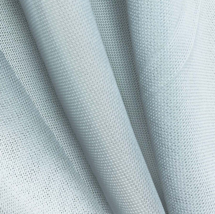 La tela base, Tul Elástico - Oslo, es un tul suave y elástico compuesto principalmente por poliéster y elastano, con un gramaje de 80 gr/m2 y un ancho de 147 cm. El color liso impreso en este tejido es Azul del Golfo, que se crea con una mezcla de cian, magenta y amarillo en diferentes proporciones. Este color simboliza la estabilidad emocional y la tranquilidad del océano, y se combina especialmente bien con tonos blancos, grises y varios tonos de azul. El tejido está impreso a una sola cara por impresión digital textil, y no es un tejido tintado sino un tejido impreso a una sola cara.