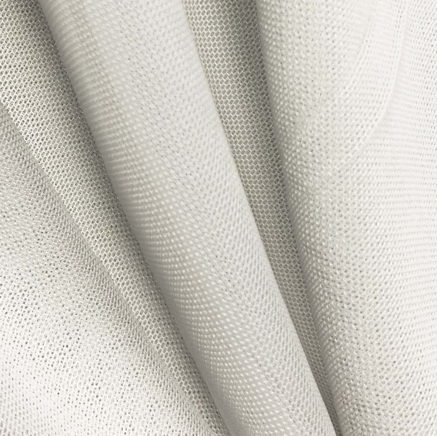 La tela base es el Tul Elástico - Oslo, compuesta por 94% de POLIÉSTER y 6% de ELASTANO, con un gramaje de 80 gr/m2 y una anchura de 147 cm. El color liso impreso es de tonalidad Blanca con un toque de Marfil suave, cuyo CMYK es 1 1 9 0. El color secundario Amarillo, con una cantidad de tinta del 9, se percibe de manera sutil en el fondo, aportando una luz cremosa y delicada. Este color armoniza maravillosamente con tonalidades pastel y cremas, creando looks elegantes y luminosos. Cabe destacar que la tela está impresa a una sola cara mediante el proceso de impresión digital textil.