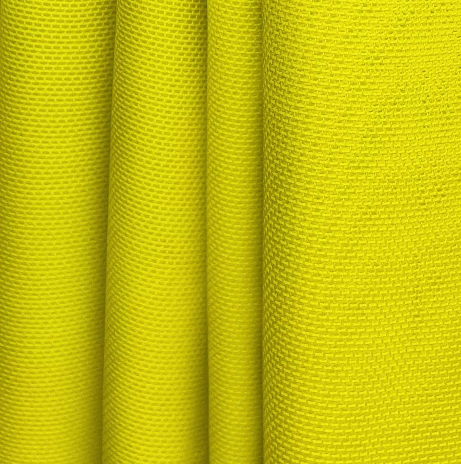 La tela base es el Tul Elástico - Oslo, compuesta por 94% poliéster y 6% elastano, con un gramaje de 80 gr/m2 y un ancho de 147 cm. El color liso impreso es un Amarillo Plátano, con un CMYK de 20 9 96 1, que lo hace vibrante y atractivo. Este tono es un color secundario que combina bien con tonos oscuros como el negro o el azul y también se ve bien con tonos pastel como el rosa o el verde.
