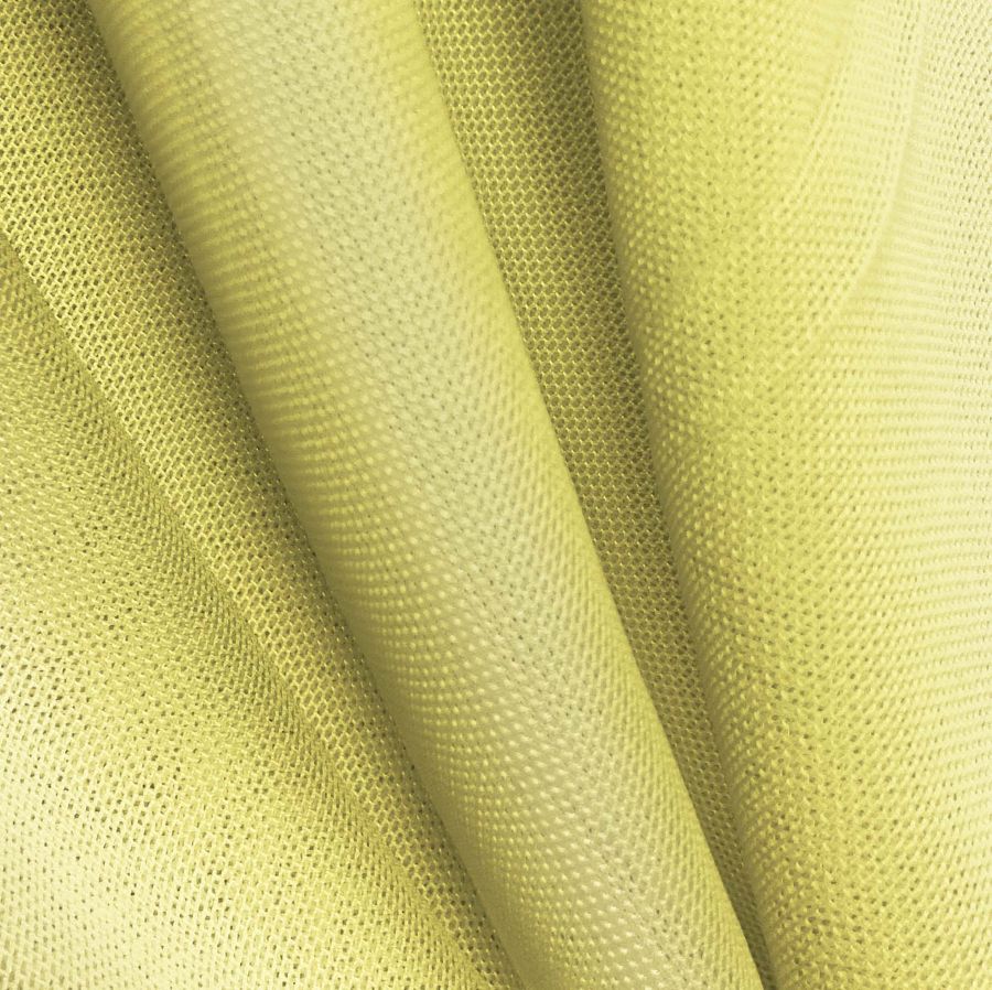 El Tul Elástico - Oslo es una tela transparente y elástica, compuesta mayoritariamente por poliéster y elastano, con un gramaje de 80 gr/m2 y un ancho de 147 cm. El color liso impreso en esta tela es un amarillo intenso con tonalidades amarillo maíz, con una composición CMYK de 4 0 63 0. Este color combina muy bien con tonalidades similares de amarillo, naranja y marrón claro.