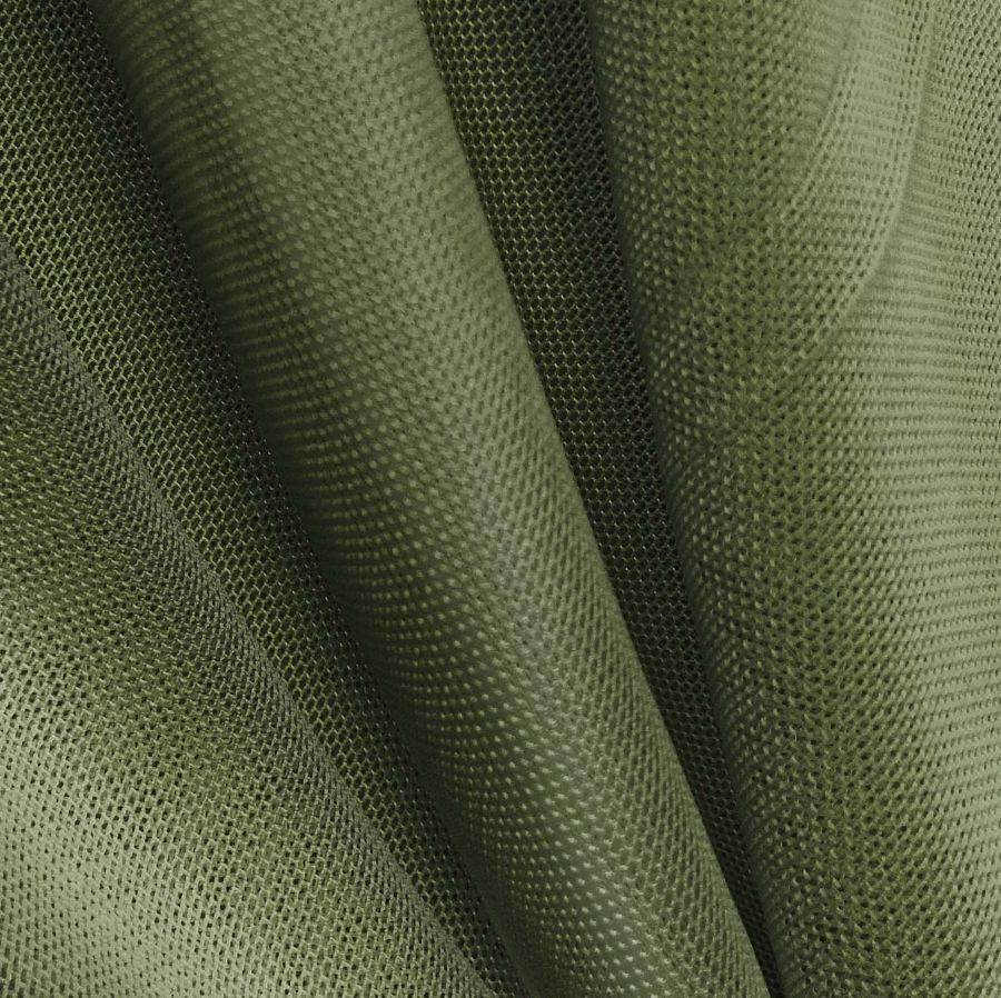 La tela base es el Tul Elástico - Oslo, compuesta mayoritariamente por poliéster y una pequeña proporción de elastano, lo que le otorga elasticidad y adaptabilidad. El color liso impreso es un verde ejército, que se ha obtenido mediante la impresión digital textil con las siguientes especificaciones de CMYK: 70 48 93 51. Este tono oscuro y elegante se combina con tonalidades claras como el blanco y el beige, creando un contraste sutil pero efectivo.