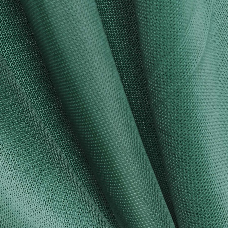 La tela base de este tejido es un Tul Elástico - Oslo con una composición de 94% poliéster y 6% elastano, que le confiere una textura y un tacto elástico y delgado, y un gramaje de 80 gr/m2. El color liso impreso es un precioso Verde mar profundo con un CMYK de 84 40 70 42 compuesto por las tintas cyan, magenta, yellow y black. Este color evoca la profundidad del mar y la serenidad, y combina perfectamente con tonos como el blanco, el negro, el dorado y el rojo. Es importante destacar que el tejido está impreso con el color liso en una sola cara, mediante tecnología de impresión digital textil, lo que le da una mayor definición y nitidez en el color.