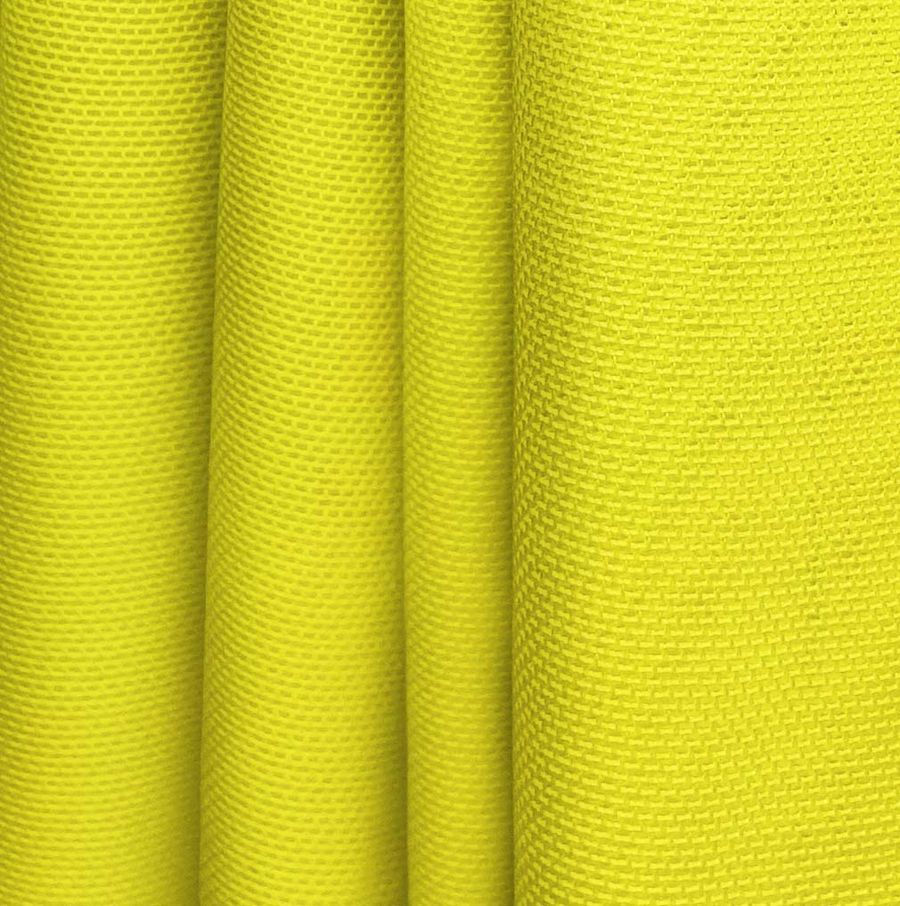 El Tul Elástico - Oslo es una tela transparente y elástica con un gramaje de 80 gr/m2 y un ancho de 147 cm. Su composición es 94% poliéster y 6% elastano. El color liso impreso, de tono amarillo canario, CMYK 10 0 89 0, destaca por su luminosidad y alegría, combinando muy bien con tonalidades azules y verdes. La tela está impresa con este color liso a una sola cara por impresión digital textil.