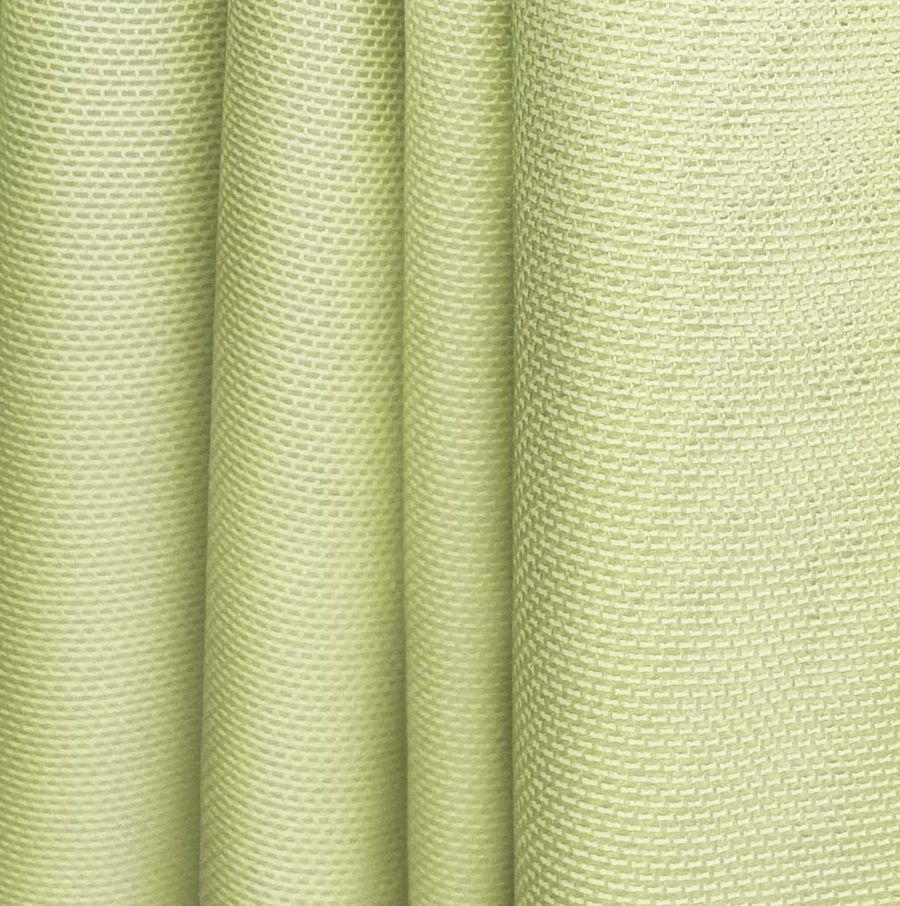 La tela base es el Tul Elástico - Oslo, un tul de 80 gr/m2 compuesto por 94% POLIÉSTER y 6% ELASTANO. El color liso impreso es un verde pastel de CMYK 22 2 57 0. El verde pastel simboliza la calma y la serenidad, y técnicamente refleja una combinación de tinta cyan, magenta y yellow con ausencia de tinta black. Este color se combina armoniosamente con tonos blancos, grises y mostaza. Es importante destacar que el tejido está impreso con el color liso solo en una cara mediante impresión digital textil.