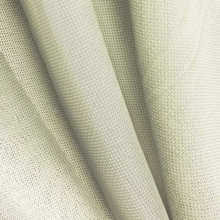La tela base es el Tul Elástico - Oslo, compuesta por 94% POLIÉSTER y 6% ELASTANO, con un gramaje de 80 gr/m2 y un ancho de 147 cm. El color liso impreso es una combinación de Verde y Beige francés claro, con los siguientes valores CMYK: 11 2 29 0. Este color secundario simboliza la frescura de un bosque húmedo y la tranquilidad de la naturaleza. Combina especialmente bien con tonos marrones y dorados.