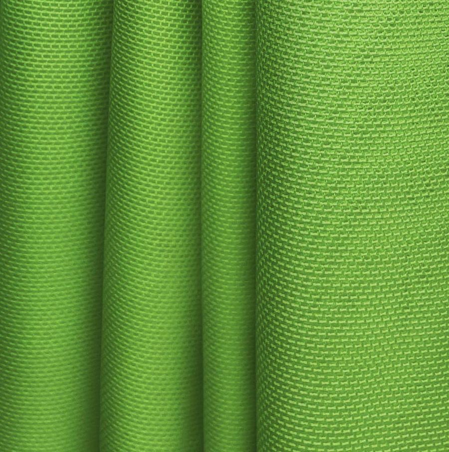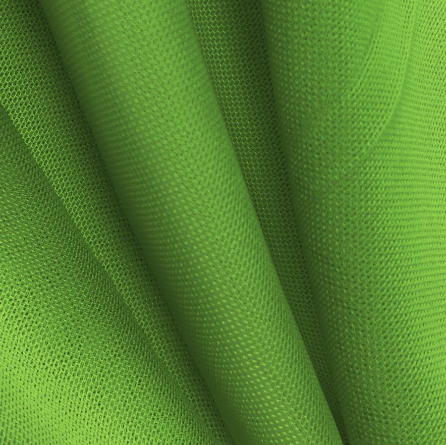La tela base es el Tul Elástico Oslo, un tul ligero y elástico compuesto por 94% poliéster y 6% elastano, con un gramaje de 80 gr/m2 y un ancho de 147 cm. El color liso del tul impreso es un verde alga de tonalidad suave, obtenido mediante la técnica de sublimación con las tintas CMYK (cian, magenta, amarillo y negro) en un porcentaje de 69, 24, 98 y 8 respectivamente.