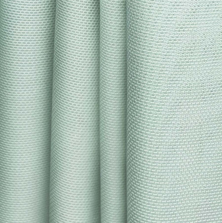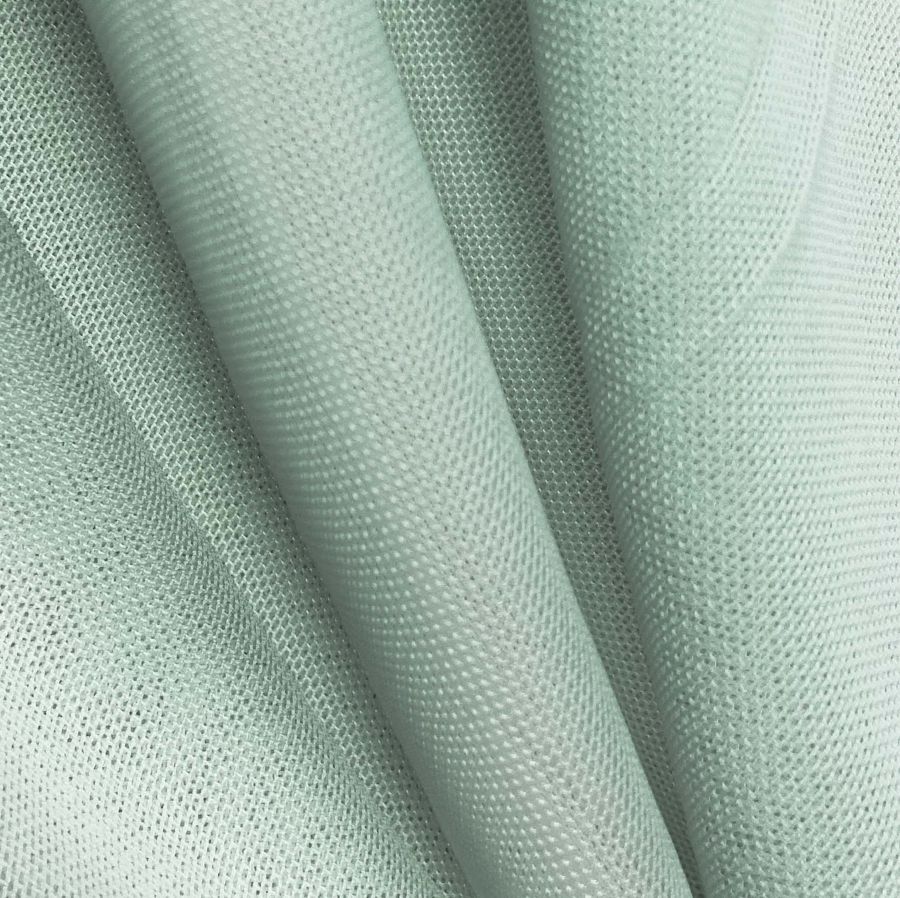 La tela base es el Tul Elástico - Oslo, compuesta por 94% poliéster y 6% elastano, con un gramaje de 80 gr/m2 y un ancho de 147 cm. Su color liso impreso tiene un tono verde azuloso, con un CMYK de 37 6 29 0. Este color secundario evoca tranquilidad, frescura y naturaleza. Combina muy bien con tonos amarillos, naranjas y rosados. El tejido está impreso con el color liso a una sola cara por impresión digital textil.