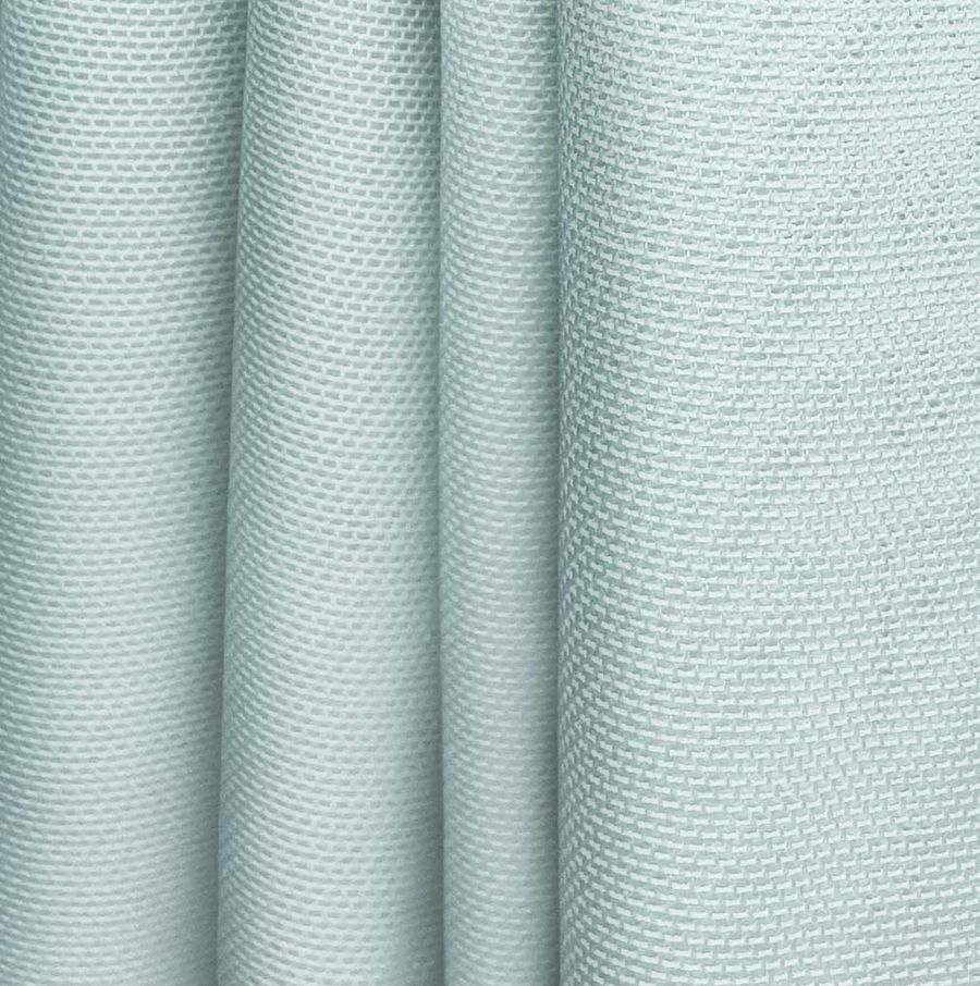La tela base del producto es el Tul Elástico - Oslo, compuesta por un 94% de poliéster y un 6% de elastano, con un gramaje de 80 gr/m2 y un ancho de 147 cm. El color liso impreso es de tonalidad Azul, con un CMYK de 33 5 17 0, también conocido como PowderBlue. Este color es suave y delicado, evocando tranquilidad, armonía y frescura. Combina especialmente bien con tonalidades tierra, beige, gris y rosa palo, creando contrastes dulces y acogedores. La tela está impresa con el color liso a una sola cara por impresión digital textil, utilizando tecnología de sublimación de poliéster.
