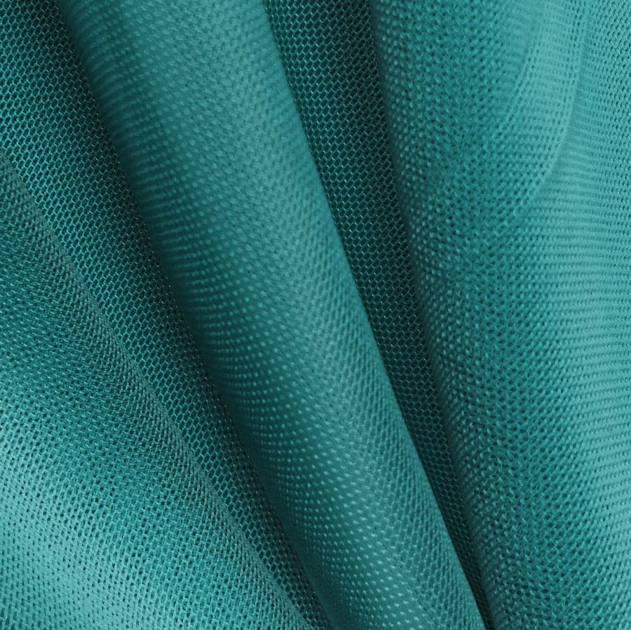 El Tul Elástico - Oslo es un tejido de tul con una composición de 94% de poliéster y 6% de elastano, con un gramaje de 80 gr/m2 y un ancho de 147 cm. Este tejido se presenta en un vibrante color verde azulado medio impreso con una tinta de alta calidad en una sola cara mediante la técnica de sublimación, que refleja un CMYK de 88 36 53 30. Este color secundario evoca a la naturaleza, la relajación y la tranquilidad, y puede combinarse especialmente con tonos neutros y toques de amarillos y grises.
