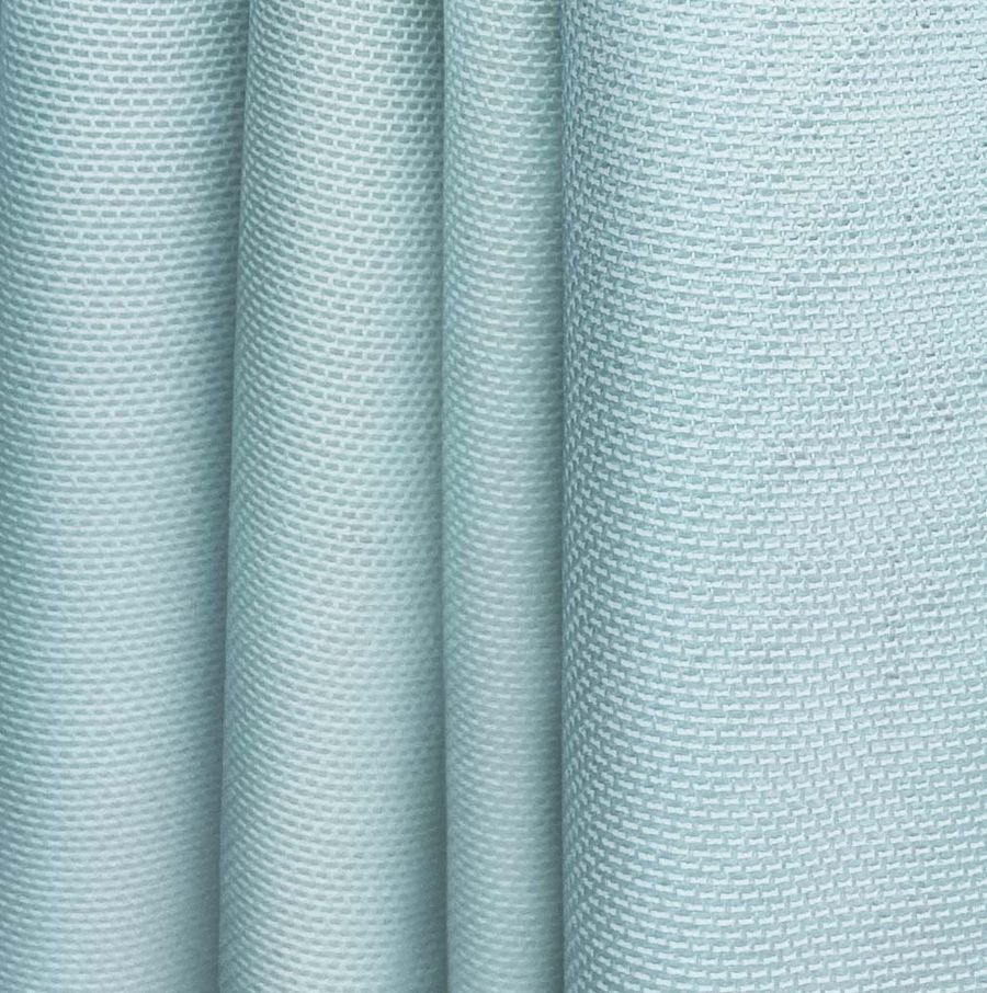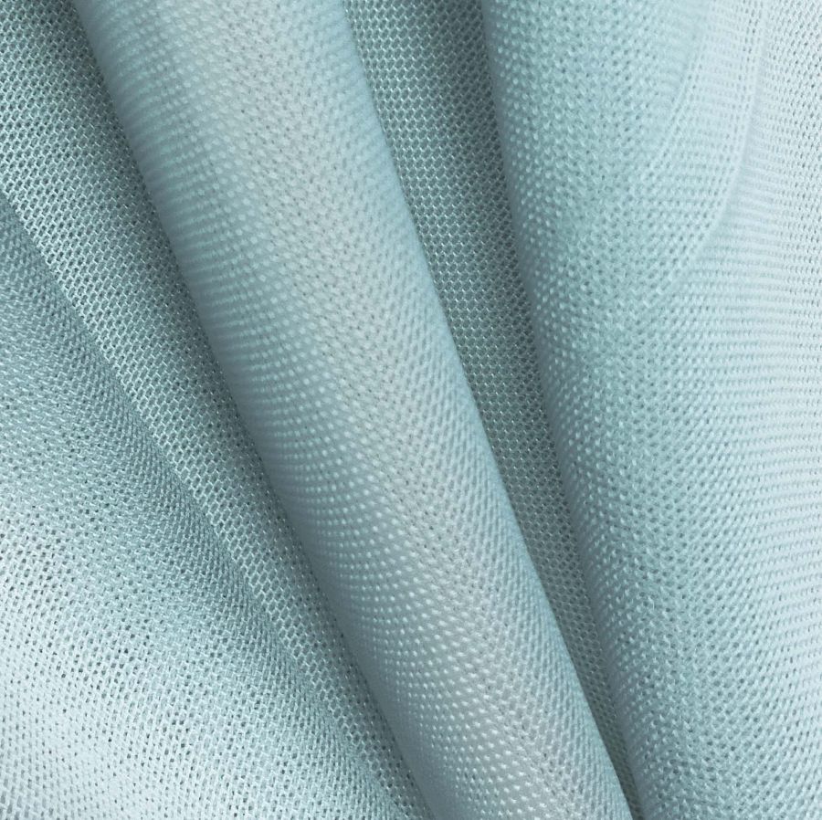 La tela base es un Tul Elástico - Oslo, compuesto principalmente por un 94% de poliéster y un 6% de elastano, con un gramaje de 80 gr/m2 y un ancho de 147 cm. La tela es de textura transparente y táctil elástica, lo que la convierte en una elección perfecta para prendas de moda para mujer y hombre, lencería, accesorios y vestidos de novia. La tela se imprime con un color liso a una sola cara por impresión digital textil, y en particular el color es un Azul Claro, con un CMYK de 42 8 16 0. El color secundario del Azul Claro es una tonalidad suave, relajante y fresca. Combina perfectamente con tonos grises y blancos para una paleta discreta y relajante, pero también con tonos pasteles y colores más saturados para crear una paleta juvenil y moderna.