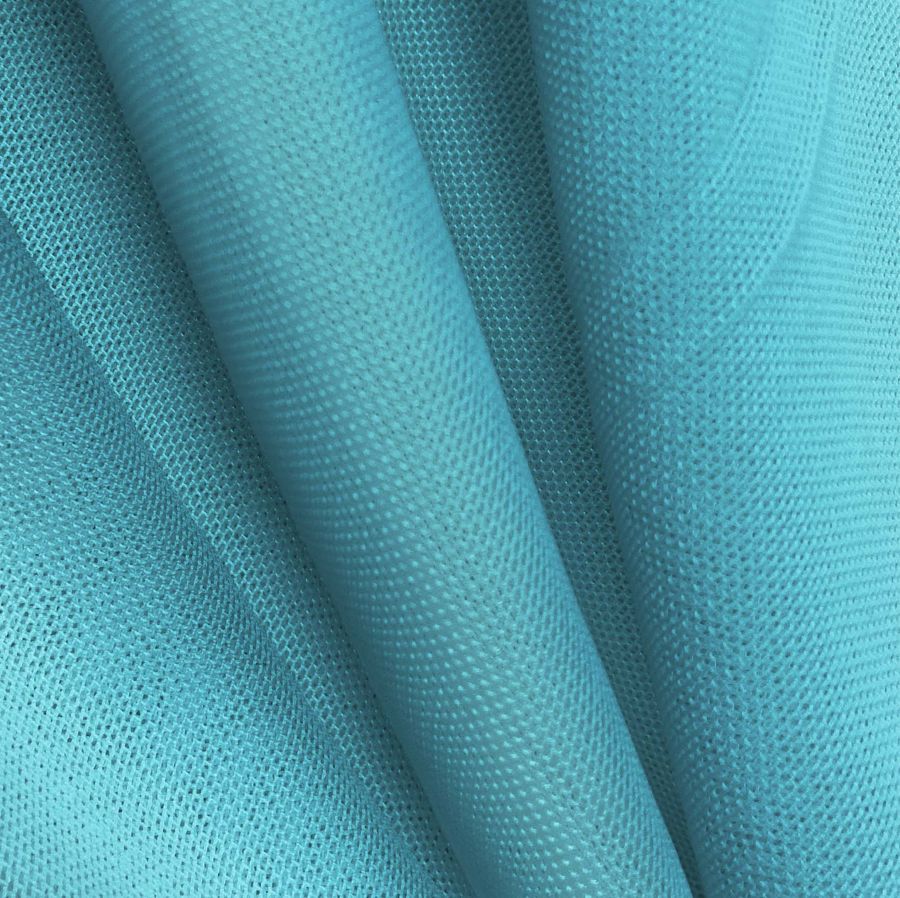 La tela base de este tejido es el Tul Elástico - Oslo; un tul de composición 94% poliéster y 6% elastano con un gramaje de 80 gr/m2 y un ancho de 147 cm. El color liso impreso es un Azul Hosta, con tintas Cyan: 66, Magenta: 15, Yellow: 20 y Black: 1, lo que representa un CMYK de 66 15 20 1. El color secundario del Azul Hosta destaca por sus tonalidades verdes, lo que permite jugar con la frescura y la calma en una amplia gama de diseños. Además, el Azul Hosta combina perfectamente con tonos claros y oscuros de la misma gama, así como con colores neutros como el blanco o el gris claro.