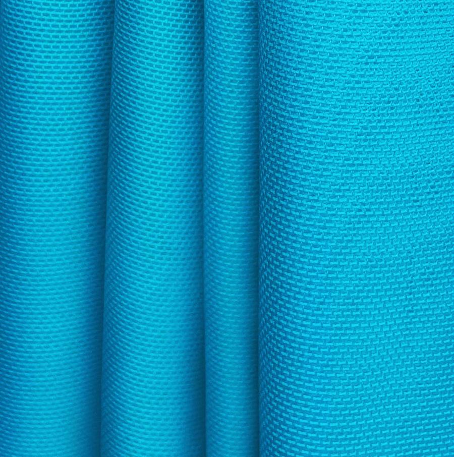 La tela base, Tul Elástico - Oslo, es un tul compuesto de 94% poliéster y 6% elastano, con una textura suave y elástica. El color liso impreso es un tono azul con un matiz de mariposa que se obtiene mediante una impresión digital textil en una sola cara. Su CMYK es de 78 28 0 0, lo que genera un color vibrante y alegre.