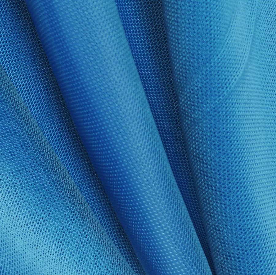 La tela base de este producto es el Tul Elástico - Oslo, compuesta por 94% de poliéster y 6% de elastano, con un gramaje de 80 gr/m2 y un ancho de 147cm. El color liso impreso en la tela es un tono azul claro, como los ojos azules, que se obtiene mediante una combinación de cian (92%), magenta (57%), amarillo (13%) y negro (2%), con un CMYK de 92 57 13 2. Este color se simboliza con la frescura y calma que evocan los tonos de los cielos despejados en la mañana. Además, este color secundario combina perfectamente con tonos claros de grises, blanco y morado suave. Cabe mencionar que este tejido está impreso con el color liso a una sola cara por impresión digital textil, lo que significa que el color es aplicado por una sola cara en lugar de impregnar todo el tejido.