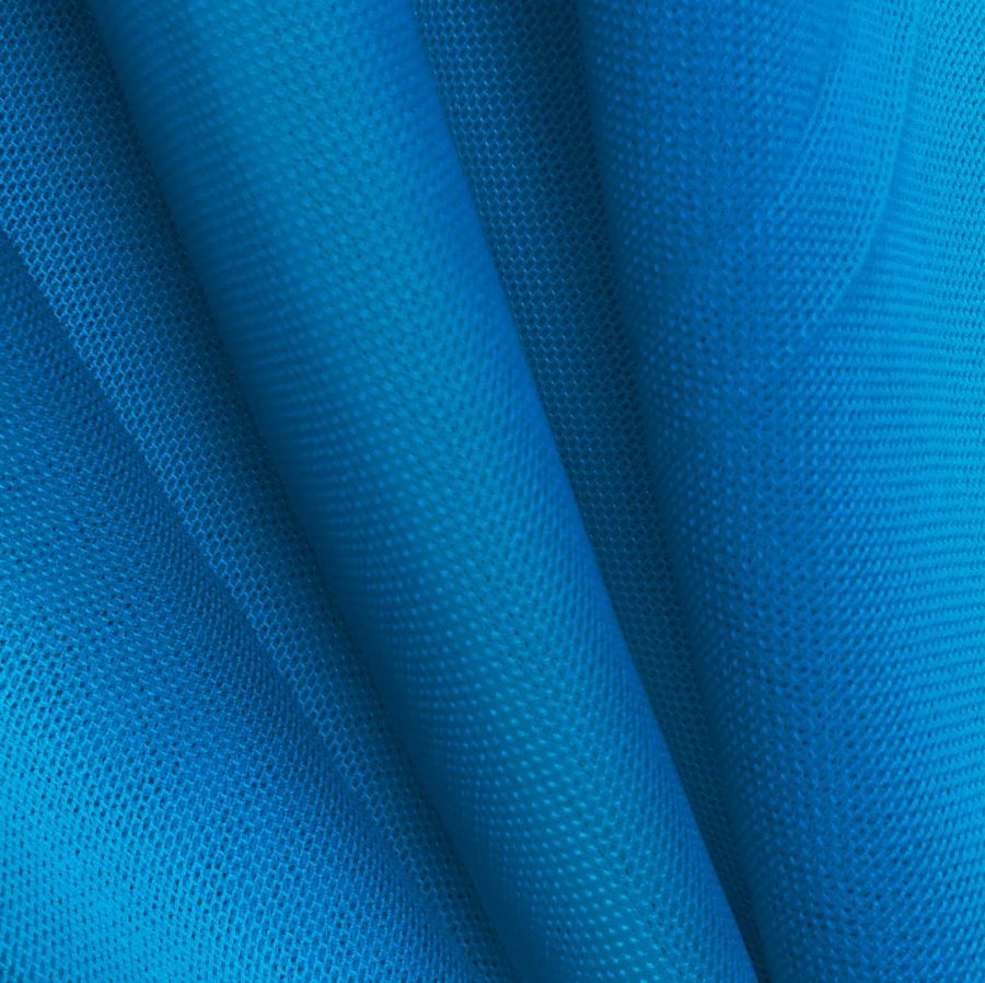 La tela base, Tul Elástico - Oslo, destaca por su composición de 94% poliéster y 6% elastano, lo que le proporciona una textura elástica y visualmente transparente. El color liso impreso es un intenso tono azul cielo, con un CMYK de 89 53 3 0. Este color simboliza la tranquilidad y la calma, y se combina especialmente bien con tonalidades como el blanco, el gris perla y el rosa palo.
