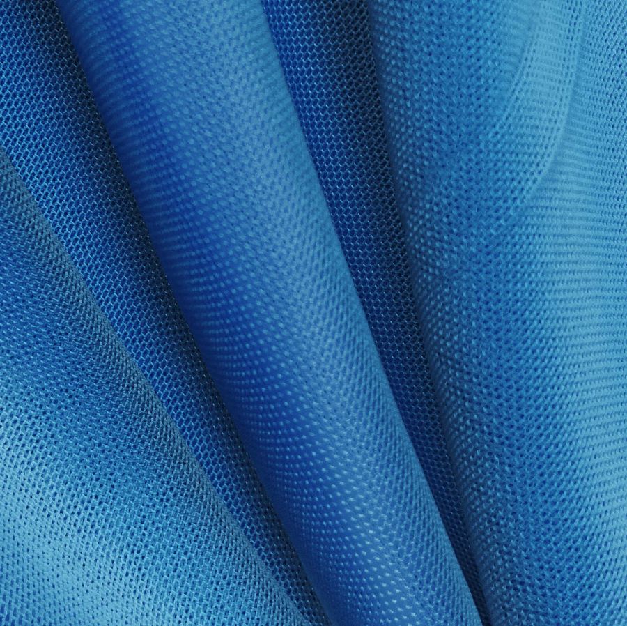 La tela base es el Tul Elástico - Oslo, compuesta por un 94% de poliéster y 6% de elastano, con un gramaje de 80 gr/m2 y un ancho de 147 cm. El color liso impreso es un tono azul zafiro, con un contenido de tinta Cyan de 96, Magenta de 66, Yellow de 13 y Black de 2, lo que refleja un alto nivel de saturación de color y contraste. Este color secundario es un tono profundo y elegante, que se asocia con la estabilidad y la confianza, y combina en particular con colores neutros como el gris y el blanco, y tonos similares como el turquesa y el marino.