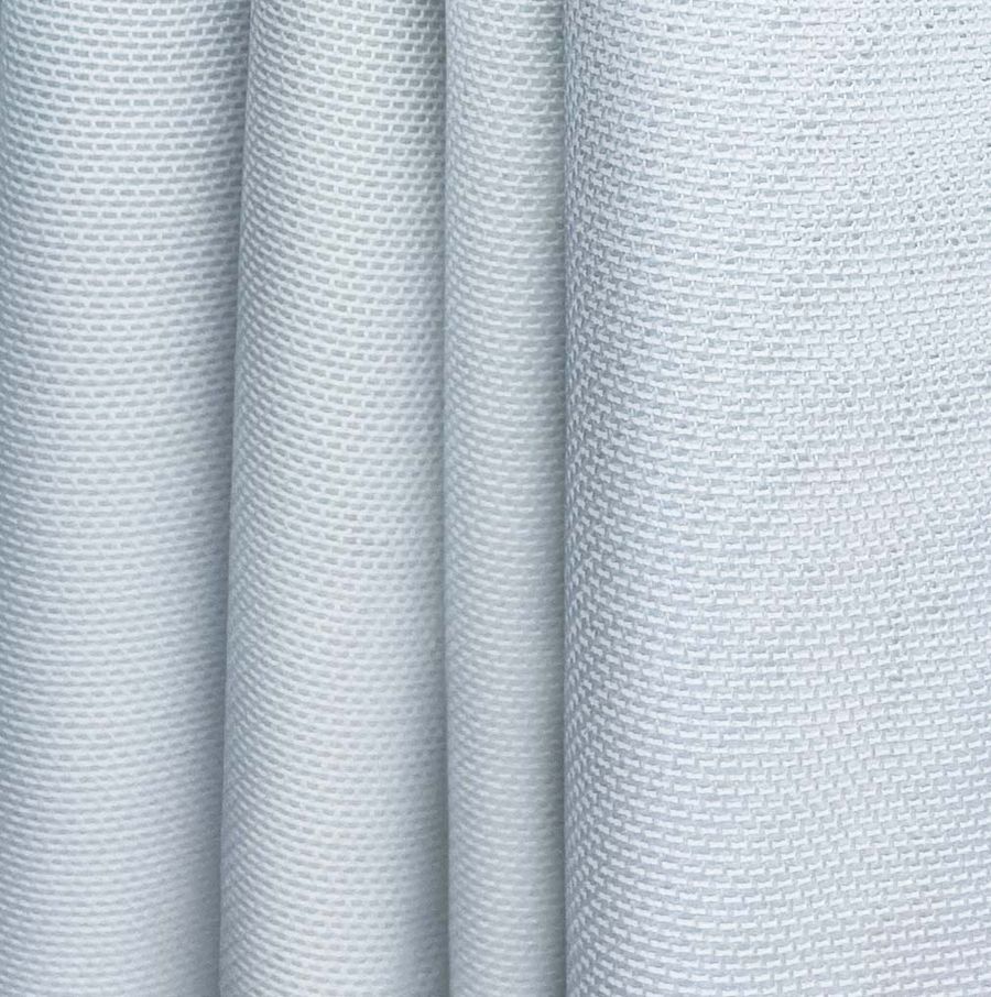 La tela base es el Tul Elástico- Oslo, compuesta por un 94% de poliéster y un 6% de elastano, con un gramaje de 80 gr/m2 y un ancho de 147 cm. Su color liso impreso es de un azul pastel, con un CMYK de 24 9 2 0. Este color transmite calma y suavidad al ambiente, y se combina perfectamente con tonos beige y blancos.