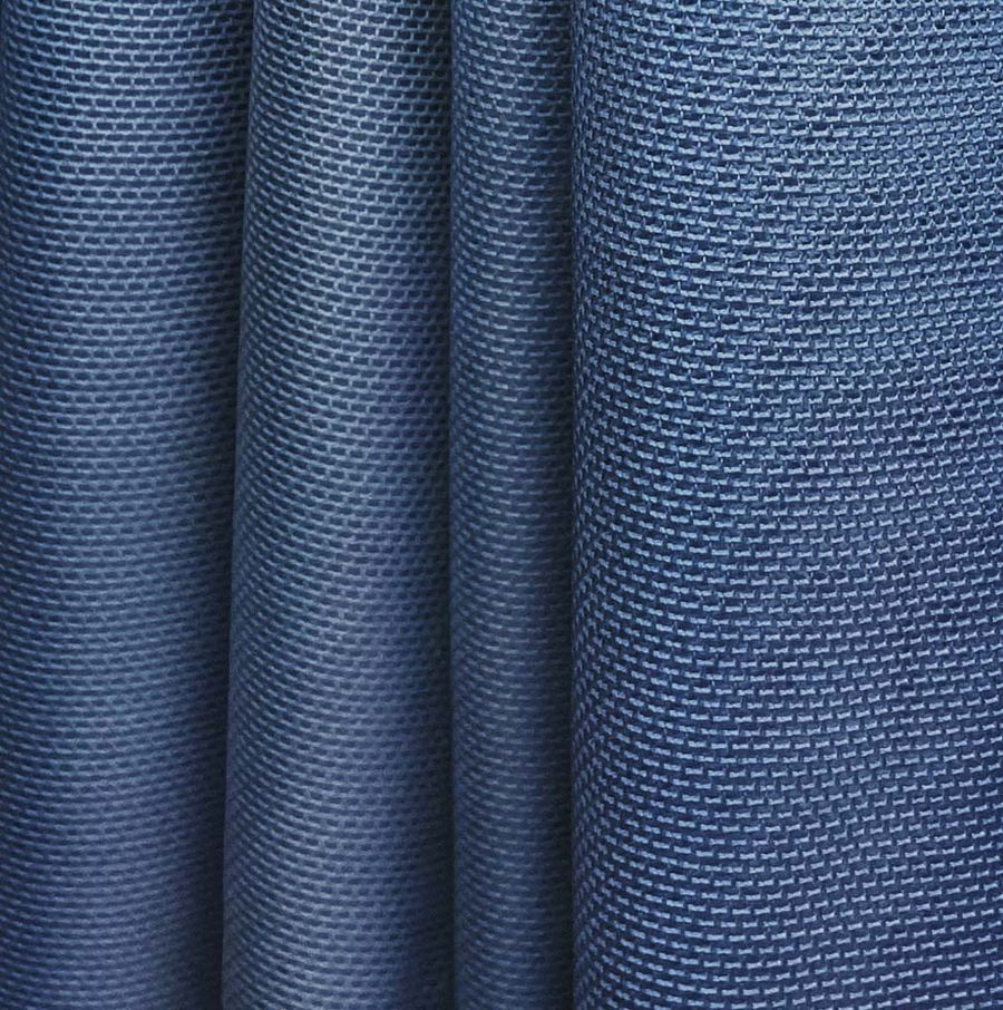 La tela base es el Tul Elástico - Oslo, un tejido de tul con un 94% de poliéster y 6% de elastano, con un gramaje de 80 gr/m2 y un ancho de 147 cm. El color secundario impreso es una tonalidad de Azul marino profundo, CMYK: 100 84 38 28. Este color se hace presente en el diseño de forma simbólica, transmitiendo elegancia y sofisticación. También destaca por su versatilidad, ya que combina perfectamente con tonos neutros como el blanco, el negro y el gris, así como con tonos cálidos como el dorado y el rosa.