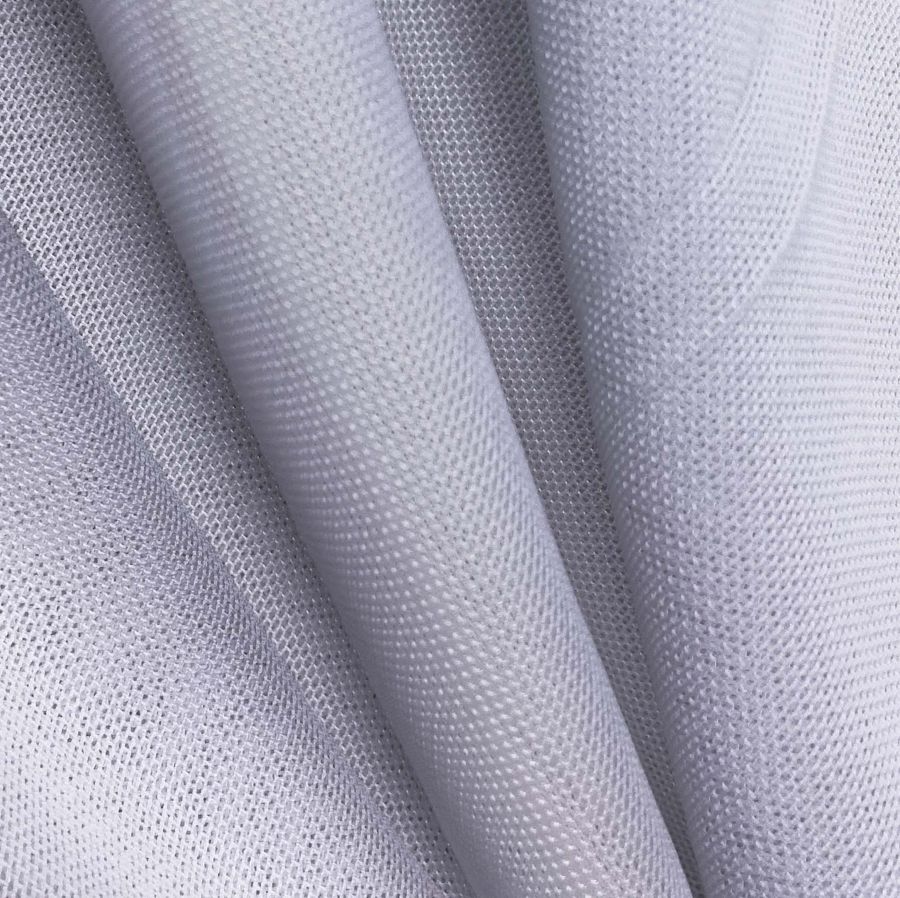 La tela base es el Tul Elástico - Oslo, compuesta por un 94% de poliéster y un 6% de elastano, con un gramaje de 80 gr/m2 y un ancho de 147 cm. El color liso impreso en esta tela es de un morado/lila pálido, con un CMYK de 31 26 4 0, lo que significa que contiene una cantidad moderada de cian y magenta, y una pequeña cantidad de amarillo. Este color puede combinarse perfectamente con tonos grises, negros y verdes oscuros.