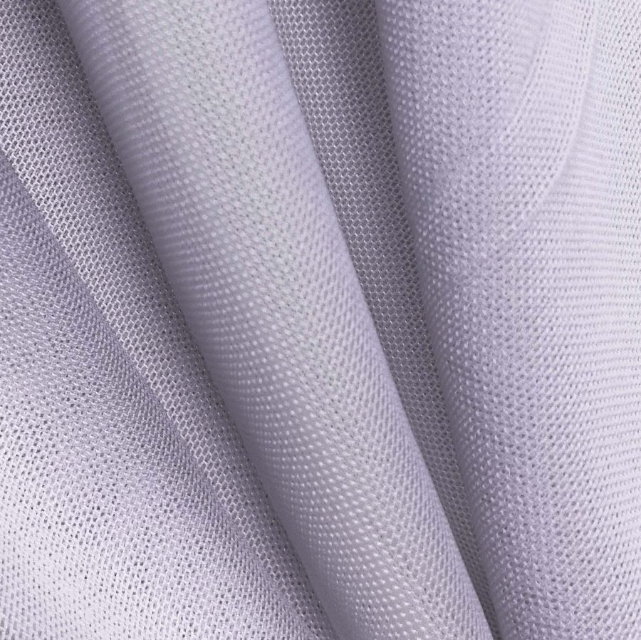 La tela base, Tul Elástico - Oslo, tiene una composición de 94% poliéster y 6% elastano con un gramaje de 80 gr/m2 y un ancho de 147 cm. Su color liso impreso es morado y lila pálido, con una combinación de tintas de 29 de cyan, 28 de magenta, 4 de yellow y 0 de black en CMYK. Este color secundario de violetas es simbólicamente asociado a la creatividad y la intuición, y técnicamente es un color frío y relajante que se mezcla bien con otros tonos pálidos y suaves como el rosa, el amarillo pastel y el gris claro. Es importante destacar que el tejido está impreso a una sola cara por impresión digital textil.