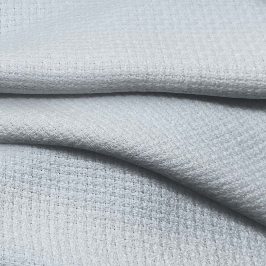 La tela base de este tejido se llama Tweed - Chanel y está compuesta por 100% POLIÉSTER, con un gramaje de 420 gr/m2 y un ancho de 150 cm. El color liso impreso en esta tela es de un vibrante Azul del golfo, cuyo CMYK es 18 6 6 0, compuesto por tintas cyan, magenta, amarillo y negro. Este color se combina a la perfección con colores como el blanco, el gris oscuro y el rosa, dándole un toque elegante y sofisticado.