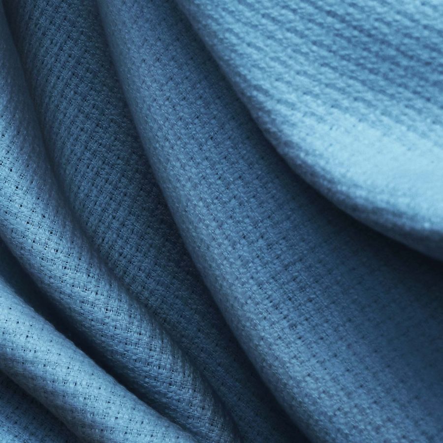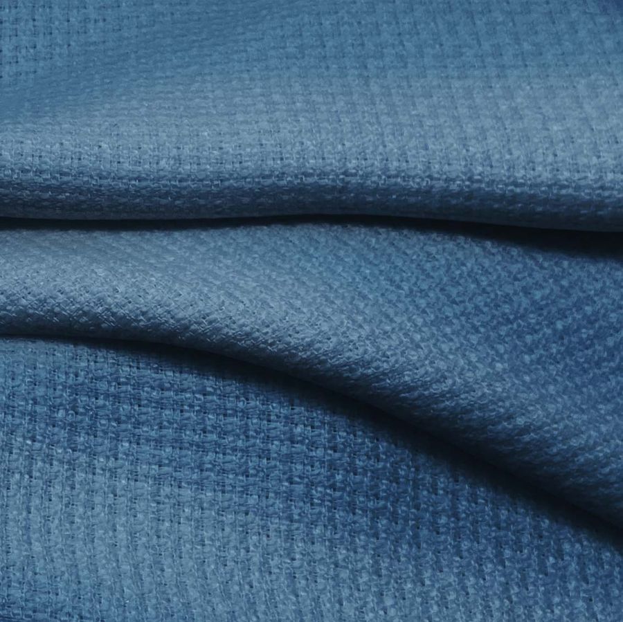 La tela base es un Tweed - Chanel, compuesta al 100% de poliéster. Impresa en color Azul Arrendajo, con un CMYK de 81 54 32 17. Este tono evoca la belleza del ave, transmitiendo su elegancia y profundidad. El color secundario, el azul, combina particularmente bien con tonos tierra, como el marrón o el beige.