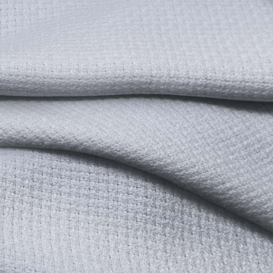 La tela base Tweed - Chanel de 100% poliéster cuenta con un gramaje de 420 gr/m2 y un ancho de 150 cm. Su color liso impreso es Azul pastel, con una combinación de tintas Cyan, Magenta y Yellow en proporciones de 23, 14 y 7, respectivamente, y un valor CMYK de 23 14 7 0. Este color evoca la tranquilidad y la serenidad del cielo y el mar, y combina en particular con colores neutros como el blanco y el gris.