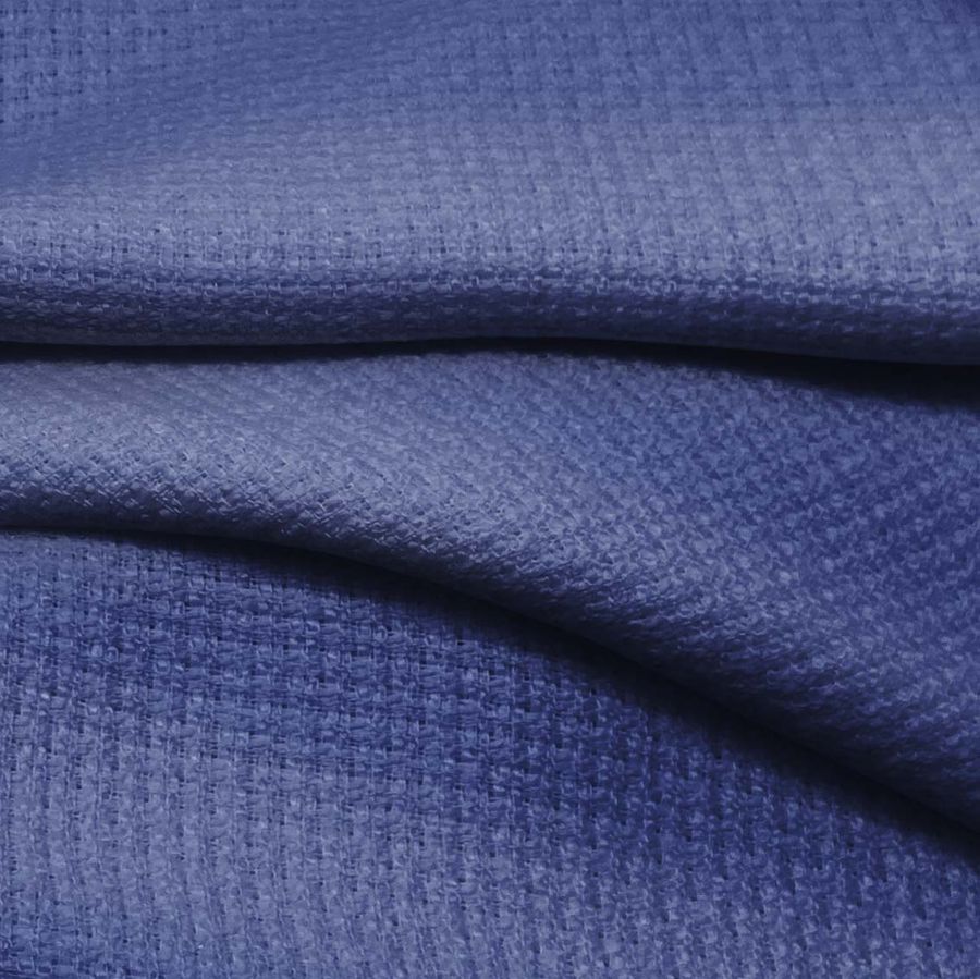 La tela base es un Tweed de Chanel de 100% poliéster con un gramaje de 420 gr/m2 y un ancho de 150cm. Este tejido presenta una textura rígida y un color liso impreso de Ballena azul con un CMYK de 83 71 26 10. Dicho color evoca profundidad y calma, transmitiendo serenidad y confianza a quien lo observa. Combinado con blanco, gris y negro, se consiguen tonos más suaves y delicados, mientras que con naranja y amarillo se produce una combinación más atrevida y llamativa. Es importante resaltar que este tejido está impreso con el color liso a una sola cara por impresión digital textil, lo que significa que existe una gran nitidez y definición en el diseño, además de que permite una amplia gama de colores e incluso degradados.