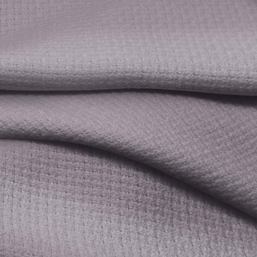 La tela base de este tejido es un tweed chanel de 100% poliéster, con un peso de 420 gr/m2 y una anchura de 150 cm. El color liso impreso es en tonalidades de morado y lila francesa, con valores de tinta cyan 41, magenta 40, yellow 28 y black 9, en un perfil de CMYK de 41 40 28 9. Este color evoca la serenidad y el romanticismo.