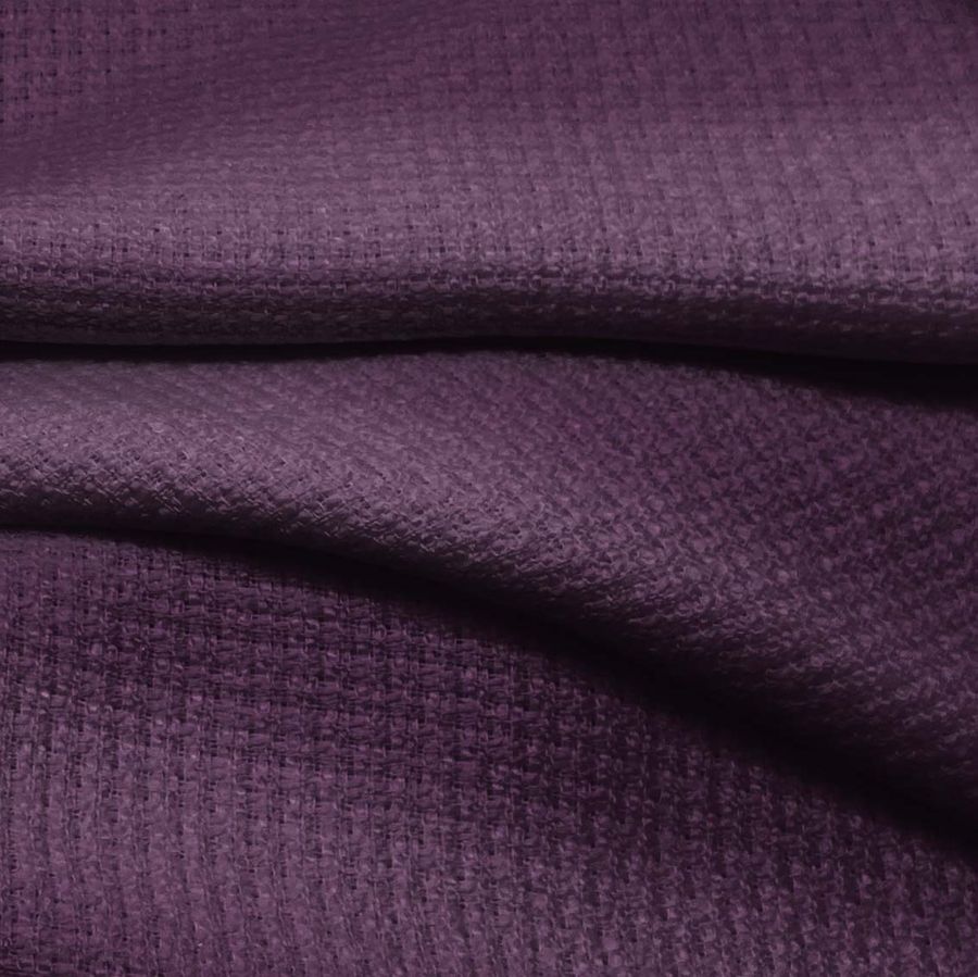 La tela base Tweed - Chanel es un tejido de composición 100% poliéster, con un gramaje de 420 gr/m2 y un ancho de 150 cm. Su color liso impreso es un llamativo morado oscuro con los siguientes valores de CMYK: 71 87 42 51. Este color es intenso y elegante, con un toque sobrio y sofisticado. Combina especialmente bien con tonos neutros, como grises o blancos, que resaltan su intensidad y equilibran su presencia en un conjunto.