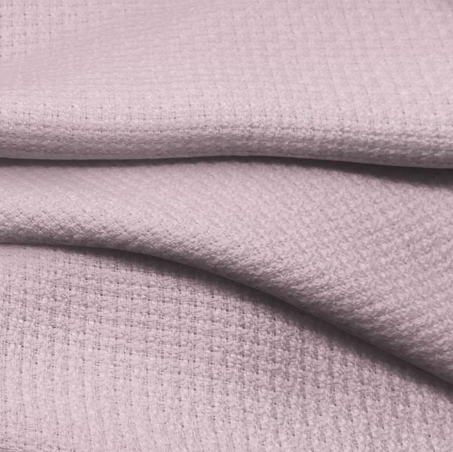 La tela base Tweed-Chanel es un tejido rígido de 100% poliéster con un gramaje de 420 gr/m2. El color liso impreso es de tonos rosa y rosa rosada, con la siguiente composición de tinta CMYK: 9 28 10 0. Este color secundario irradia compañía, amabilidad y ternura, y se combina perfectamente con el negro, blanco, gris y marrón.