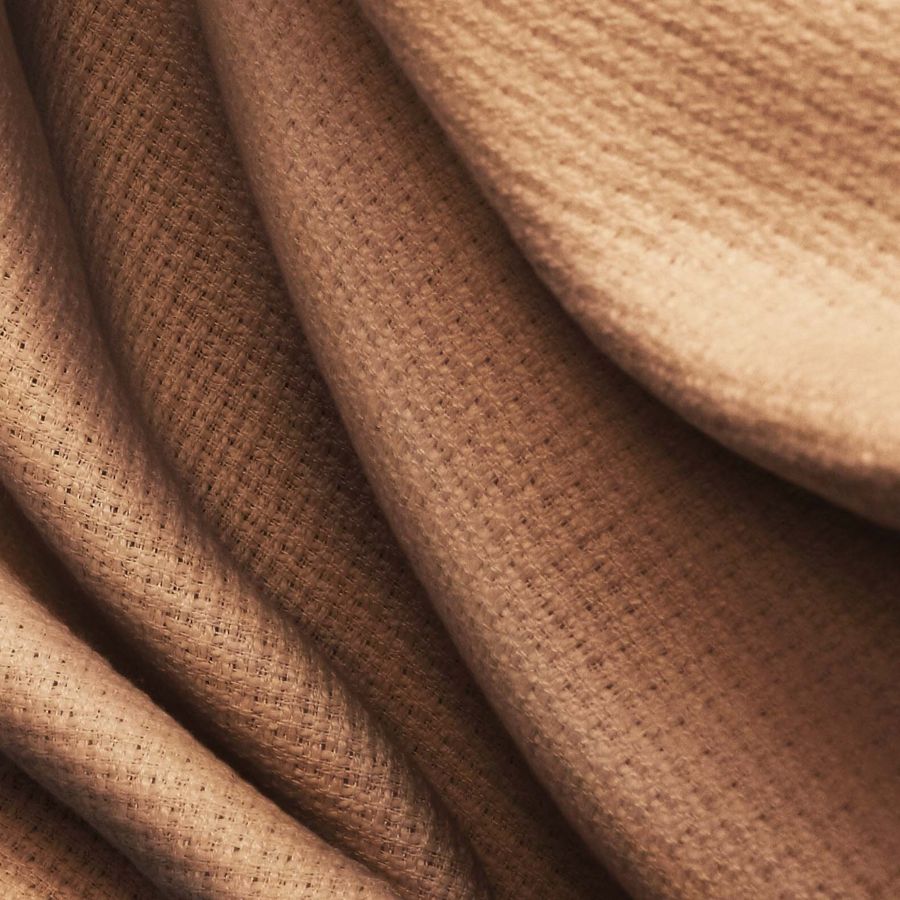 La tela base es un Tweed-Chanel, compuesta por 100% poliéster y tiene un gramaje de 420 gr/m2 con un ancho de 150 cm. El color liso impreso es Oso Café-Marrón con un CMYK de 33 58 68 35. El color Oso Café-Marrón es un color que simboliza la tierra, la estabilidad, la serenidad y la madurez. En la técnica de impresión digital textil, los colores CMYK se imprimen en capas para conseguir el tono final, en este caso, el color Oso Café-Marrón es el resultado de combinar cian, magenta, amarillo y negro. Este color combina muy bien con tonos beige, grises y verdes oscuros.